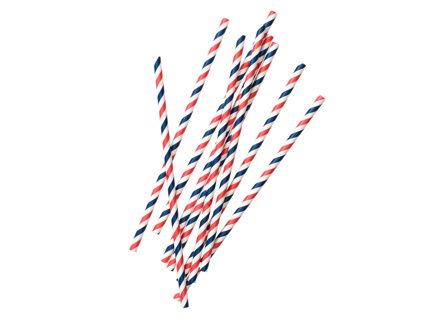 Paper straws 19.7cm, 24pcs, blue/white/red