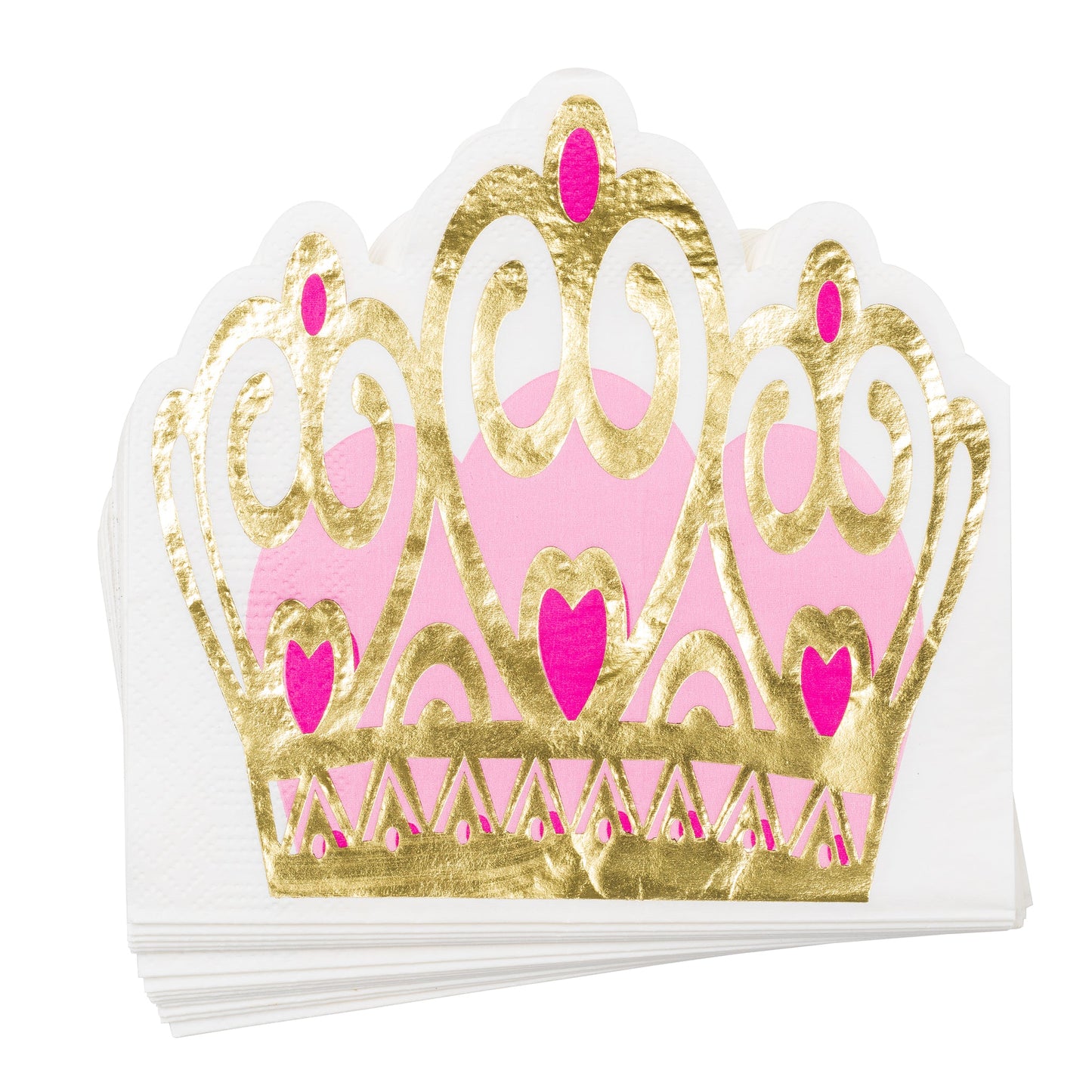 White napkins with pink and gold details. Punched to imitate a crown.