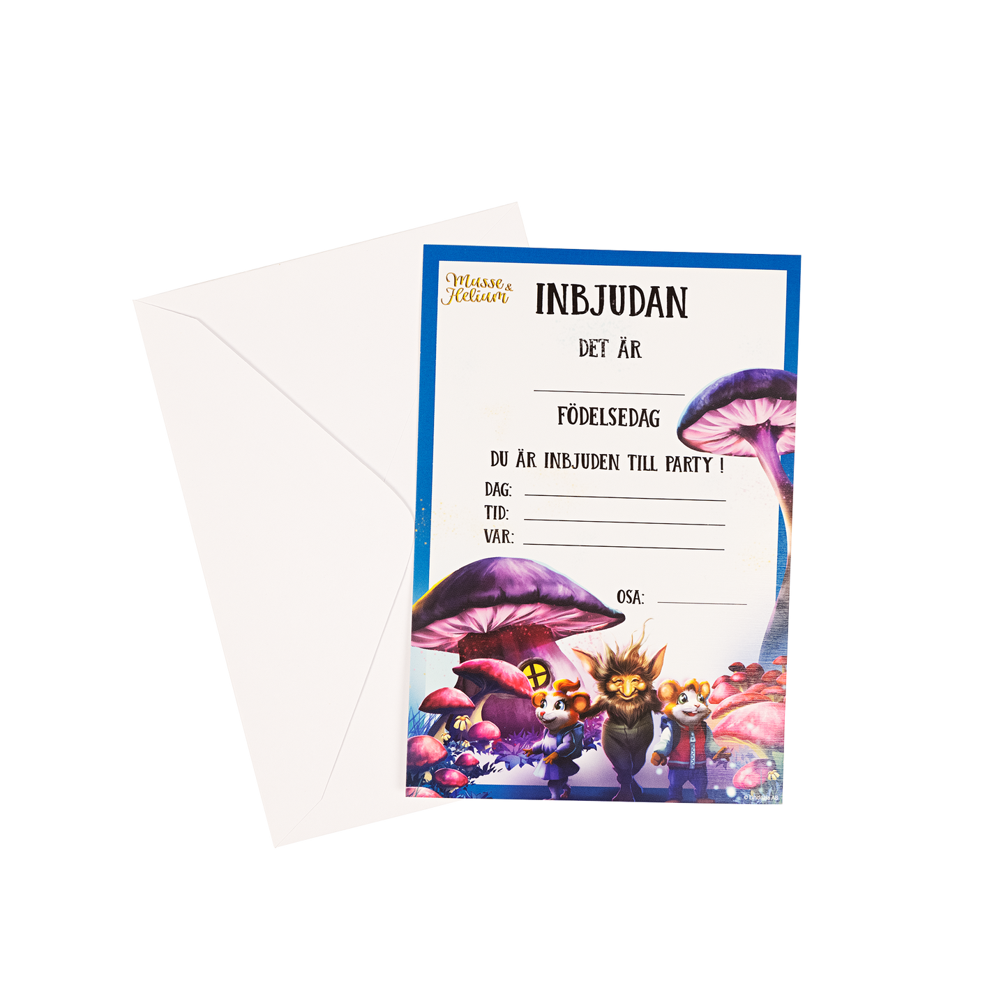 202799 Inbjudningskort 8st m. kuvert, Molo, Musse & Helium